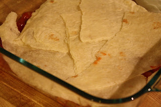 While the vegetables are cooking cover the bottom of an 8x8 inch pan with salsa.